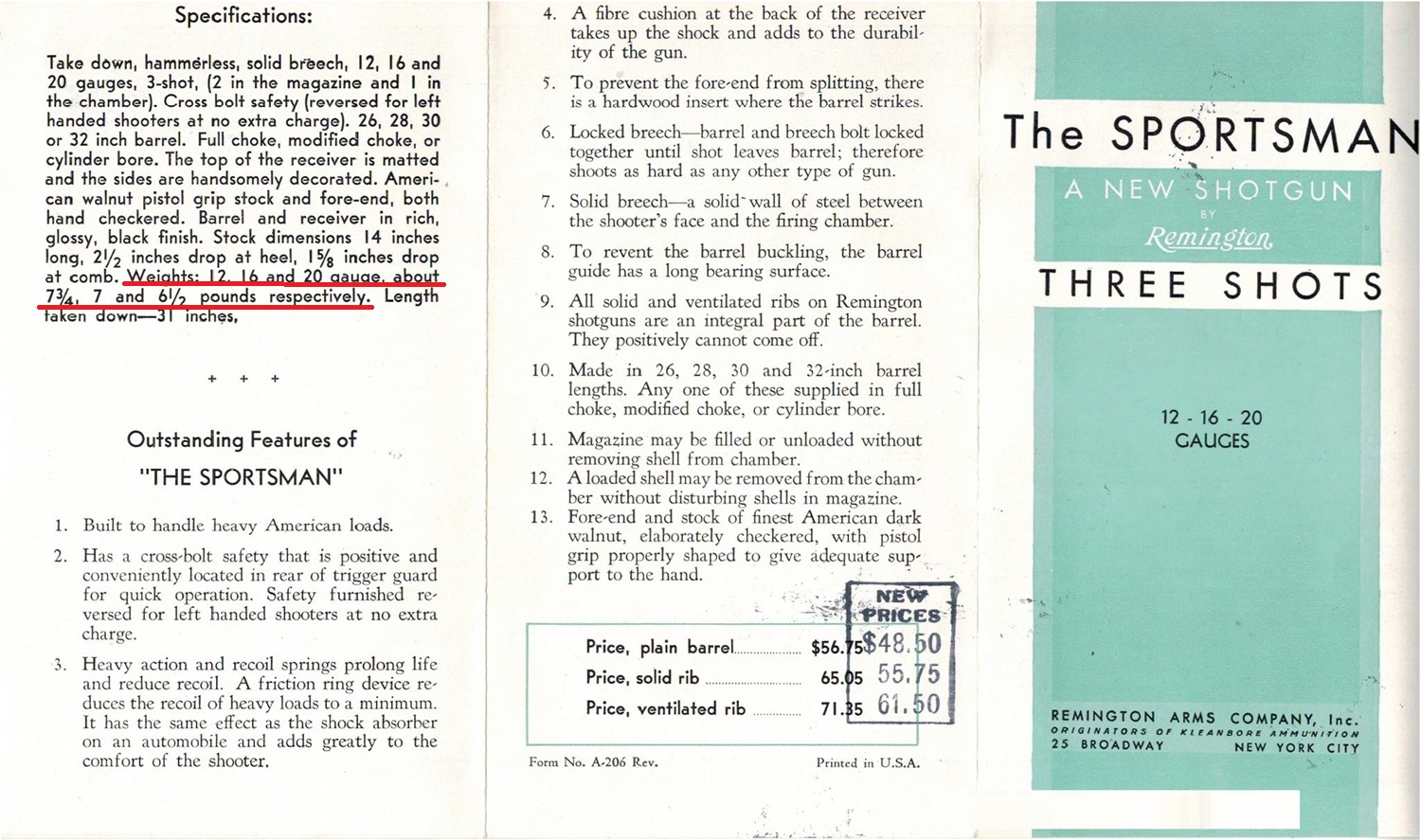 Cruising GI this forenoon I see the Cabela's in Green Bay has a 12-gauge 30-inch The Sportsman that their ad says weighs 5 lbs!!!