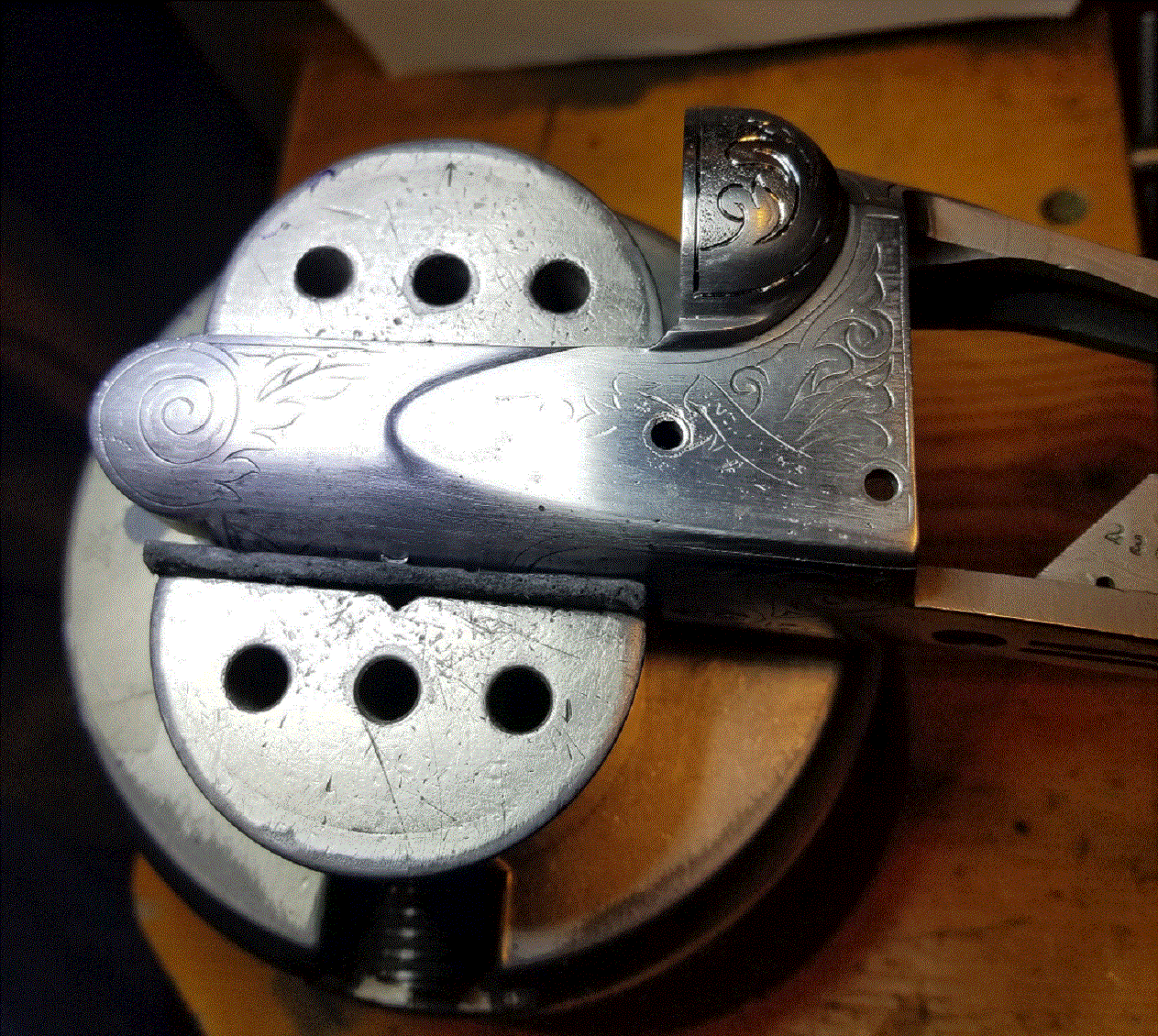 Mike you did a great job re-cutting the engraving on A-Grade Fox I'm now re-cutting the scrolls on a Colt SSA and a Browning A-5 also found a Winchester 20Ga. M12 at gun show with I restored I really enjoy bring these classic guns back to pristine condition keep up the good work. J.J.Roberts