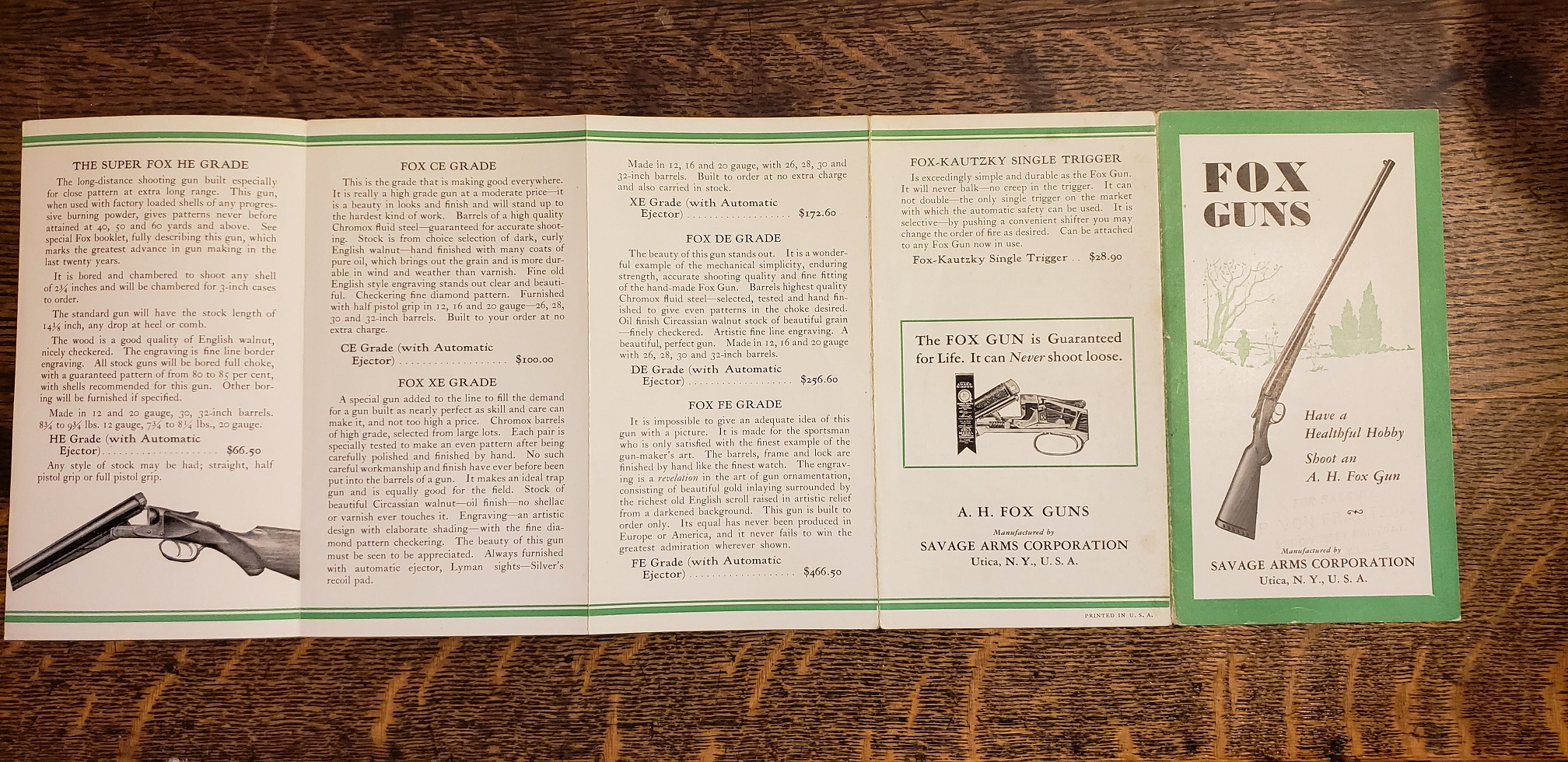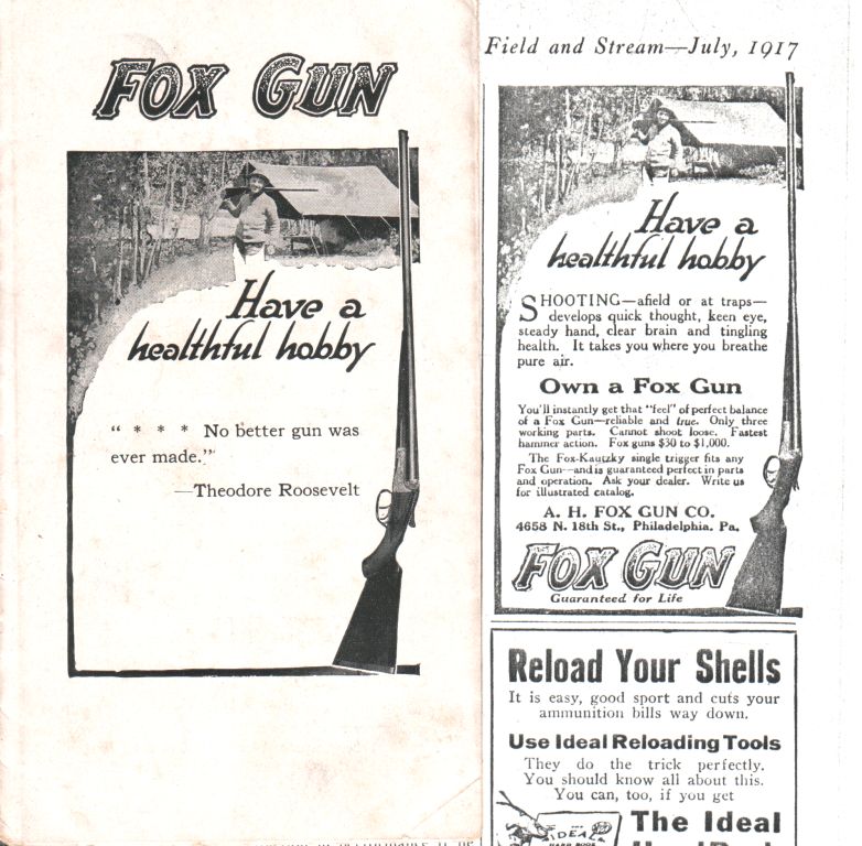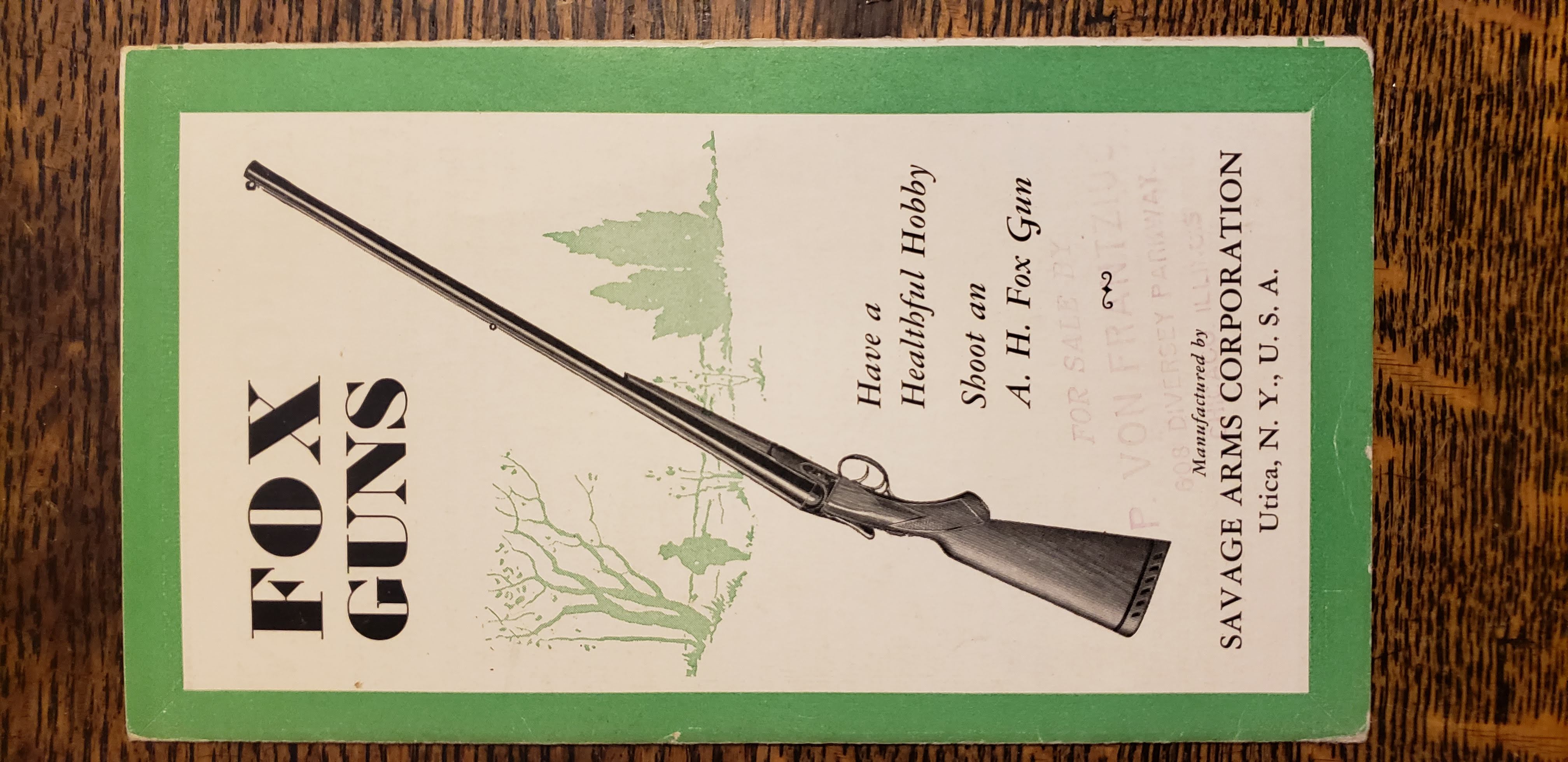 That is a great little folder, with links back to the 1917 magazine ads (right) and the 1927 folder of the A.H. Fox Gun Co. (left).