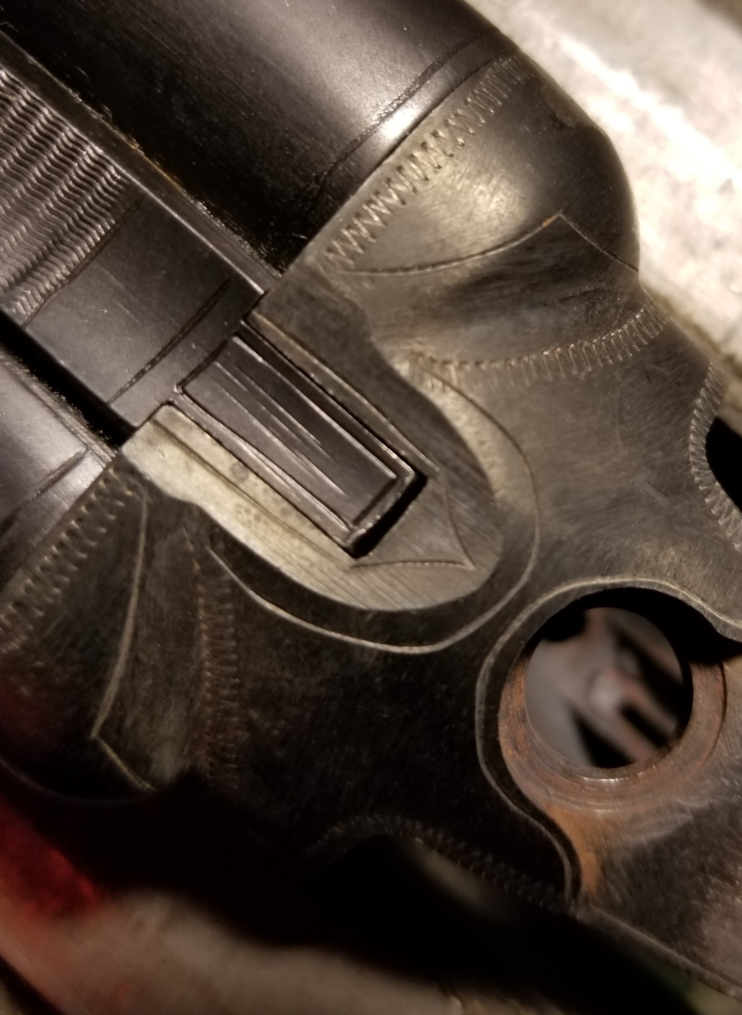 Here is the 20 gauge Sterlingworth made into a modern XE pattern. I had to do a lot of filing and sanding before I could even start the engraving. The leaf pattern was inspired by another upgraded gun I saw on this forum. I will be sending it out for case coloring soon. I will have to see how much of the engraving detail is lost after coloring. May need to french gray it, but that is up to the gun owner. The owner plans to upgrade the wood in the future. I will post some before and after pics. Enjoy, Tim