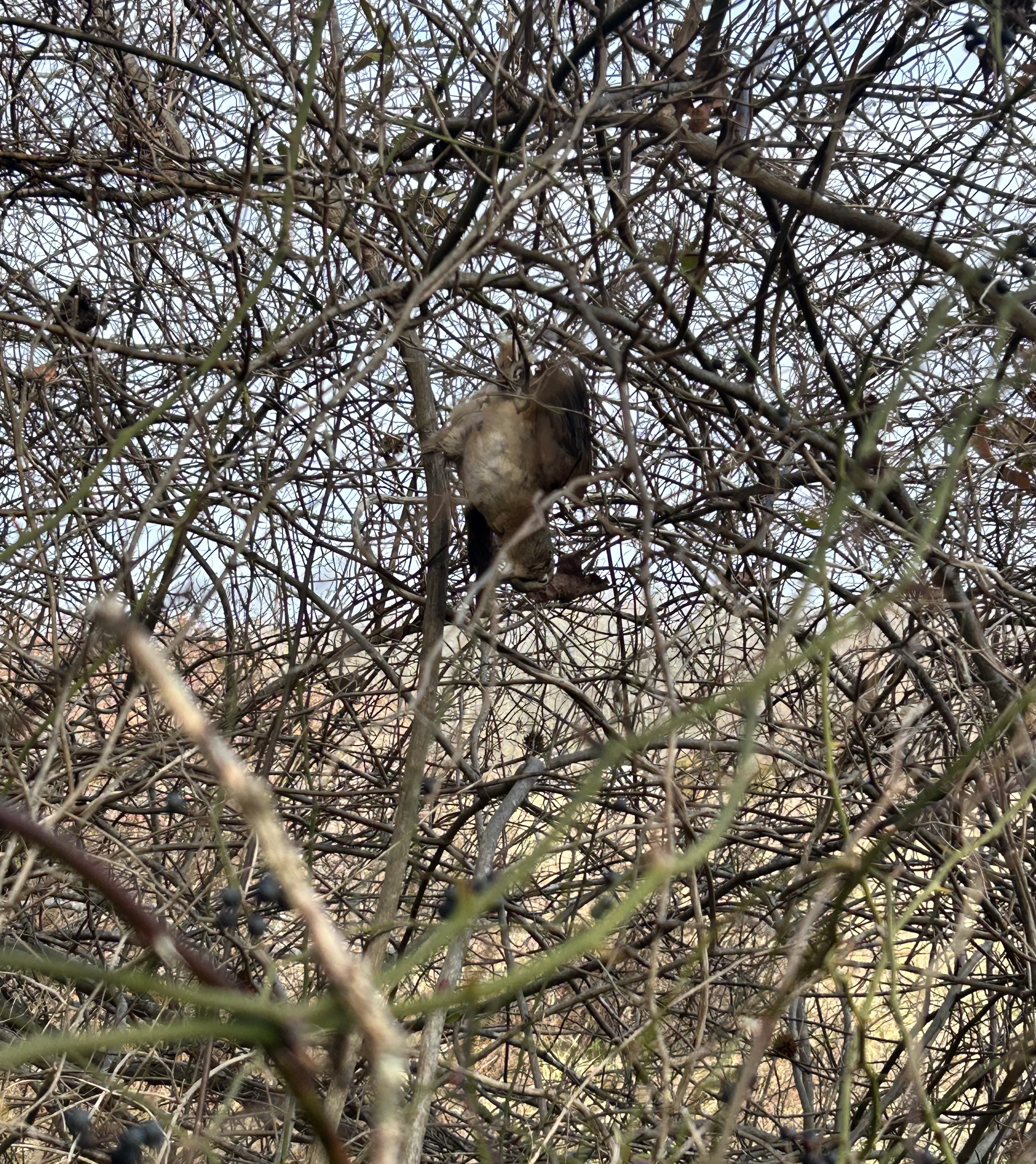 But the rest of my group were just getting started. Mike and Pat finished the long sweep through the thicket and we met on the path. After being called names like Elmer Fudd and Luke Trailwalker we crossed the path and worked our way back to where we started from. We had 4 more flushes and Pat and Mike each scratched a birds of their own. After this we went to the edge of the bay where the green briar makes it a hellhole if you don’t have good briar pants. There were a lot of flushes and misses but in the end they managed to down 4 more birds to take their limits as well. One particularly vexing hit was almost lost as the dogs could not locate a downed bird that fell across a water filled slough. I volunteered to look and had to walk about a hundred yards to find a place to cross. After getting back to the area I was striking out as well and was about to reluctantly give up when I saw the bird hanging in the bush upside down about 7 feet in the air. I let the guys know and that made the 9th and final bird of the day.