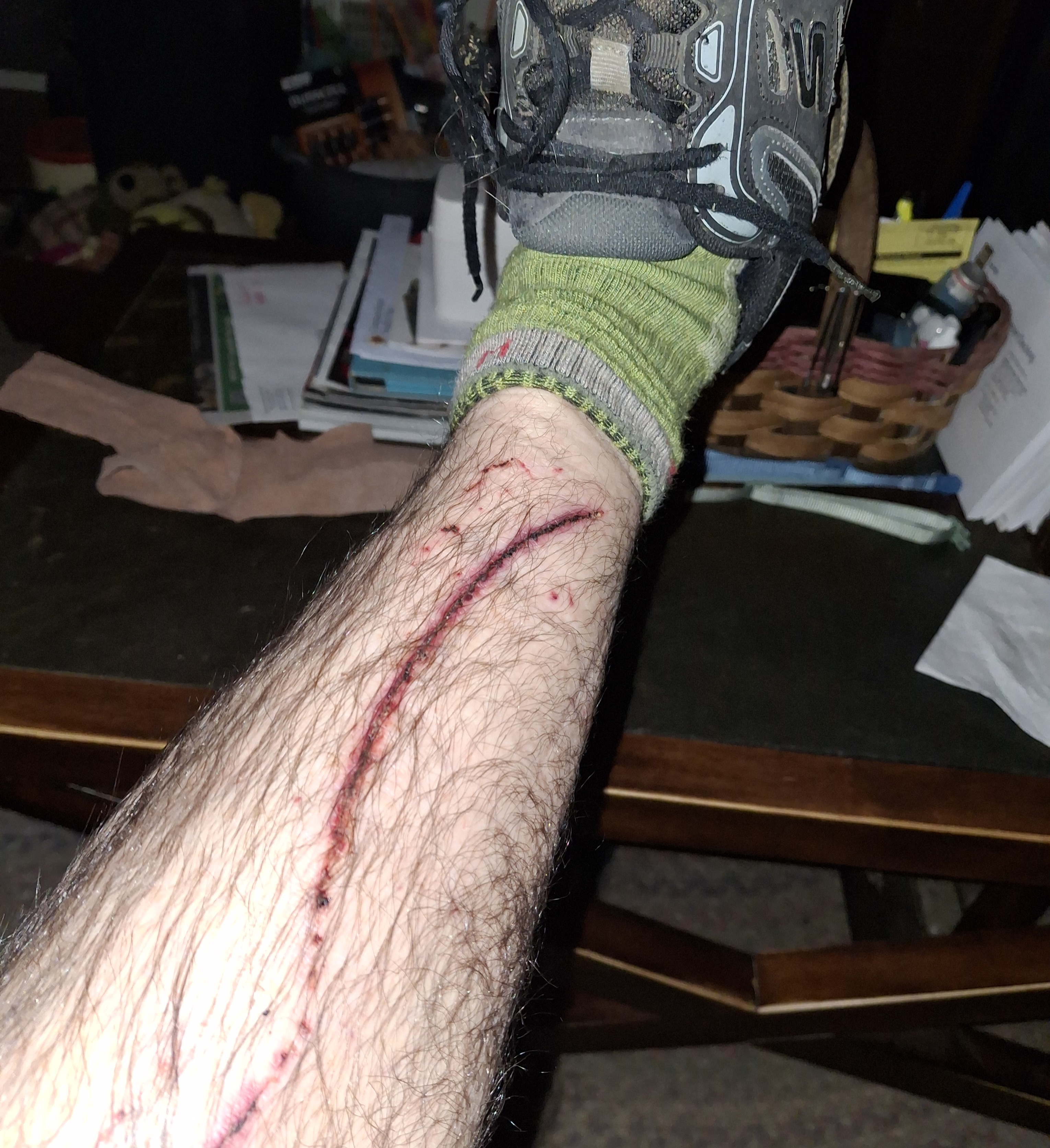 It must have bled pretty good cause my wife almost fainted when I took my hat off when I got home. I put my hand on the top of my head and it felt like a dried out night crawler in my hair lol!