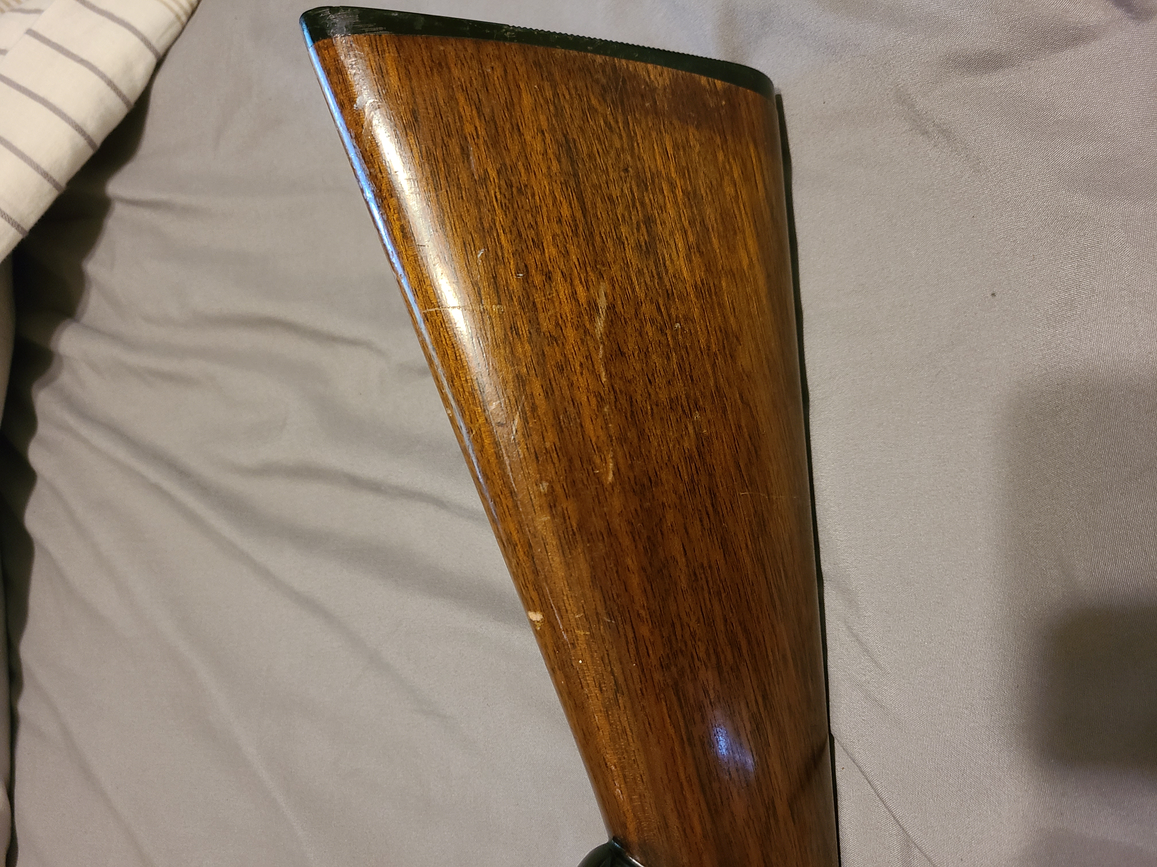 You can get an order card on it I'm thinking and see how it left the factory. Regarding chamber length, a chamber length gauge will confirm what you have. Far as I remember a 3" shell will still fit in the chambers and you can close the action even if it is short chambered. Yep, that's a sterly stock.