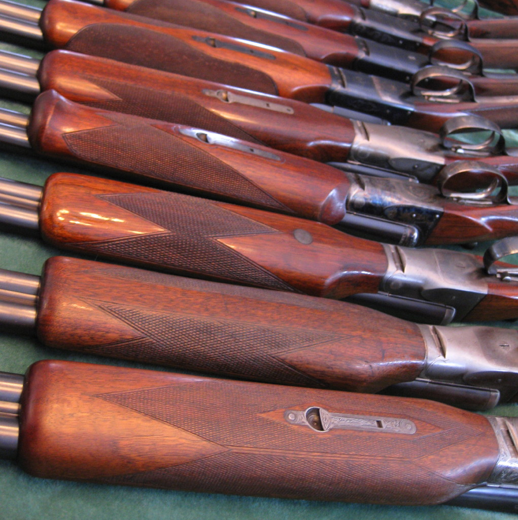 The catalog pictures of all four styles of B-Grades show checkered stock cheeks. The B-Grade was discontinued well before beavertail forearms appear in the records. Sometime back Tom Wyraz posted this picture of factory beavertails --