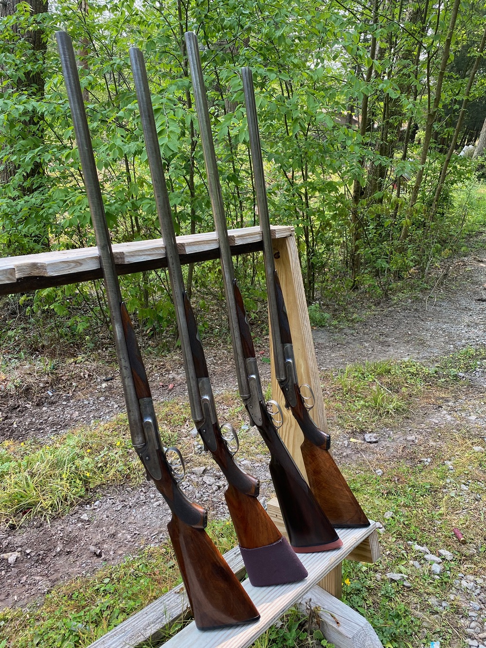 First pic, left to right .... two H Grade 30" guns, a 32" G Grade straight gripper, and a G Grade/Ejector 30". All 12 gauge with twist or damascus barrels. 100+ rounds fired from each gun.