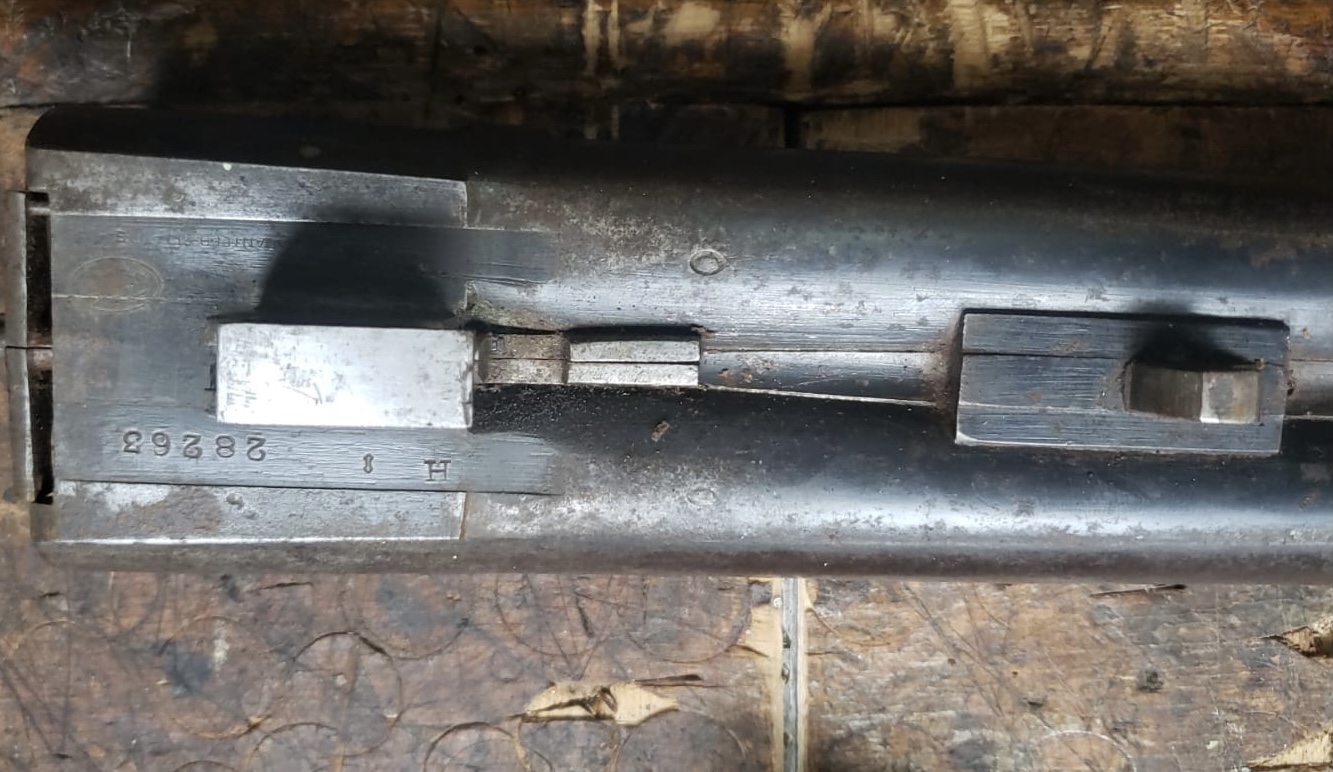 I got a call from Chris Dawe in Canada who some of you know letting me know he saw a gun posted for sale on a web forum - Fox gun for sale 32" barrels in rough and rusty shape $250. The guy was not keen to post or send pictures but he said the gun closed, it cocked and fired, the barrels although rusty were usable, and it had ejectors. I figured worst case it would be a great parts gun. I don't remember who closed the deal but with a little shipping money the gun was on the way to Chris.