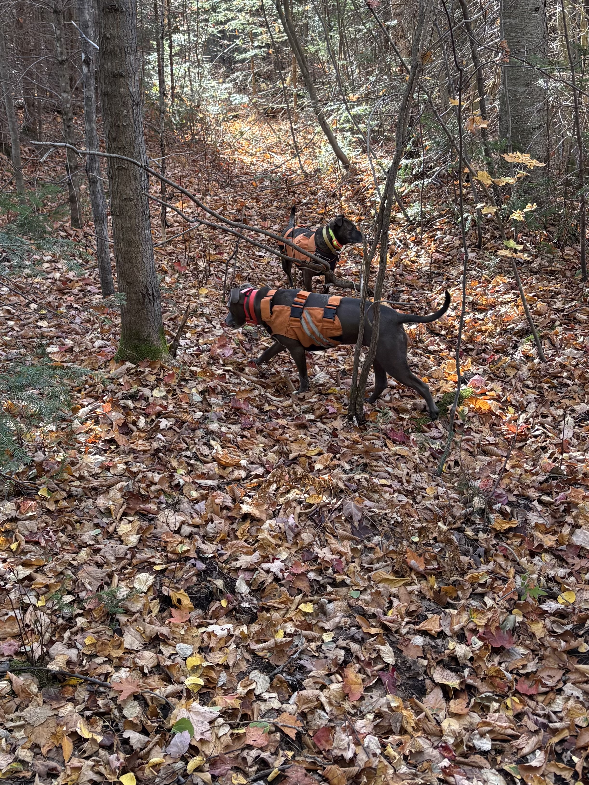 Sunday went back to another remote trail going about 1mi uphill. Saw one walk and vanish into woods on way up and on way down dogs went into woods and about 20’ in from the logging trail was another old small trail heading downhill. Dogs followed something and 300 yards later reached the bottom next to my truck. Called it a day but was thinking they were on something.