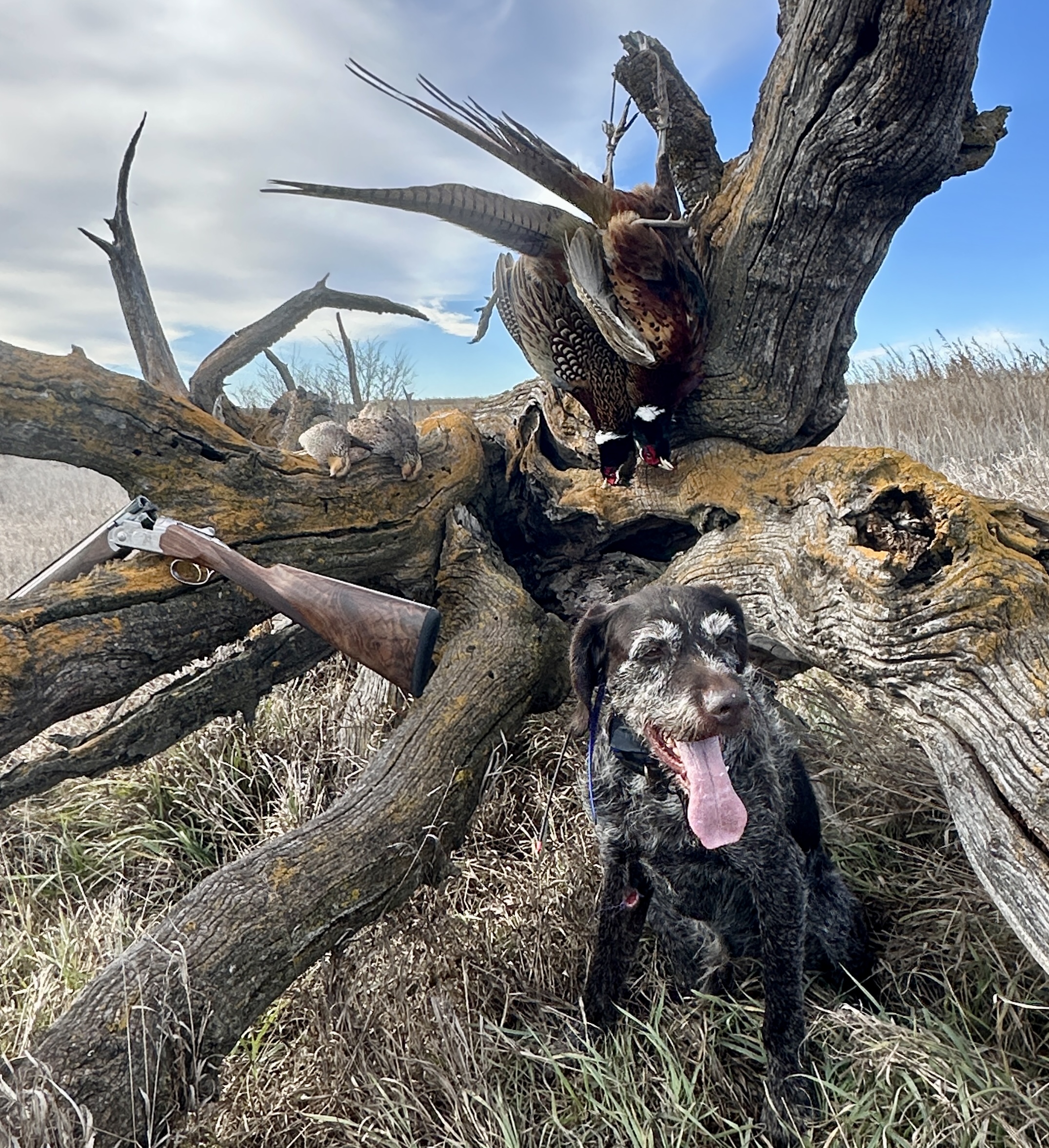 Was able to get a true double on the pheasants and also a double on the quail, down in Kansas. Otto is having a blast. Other than the cut on his front leg.