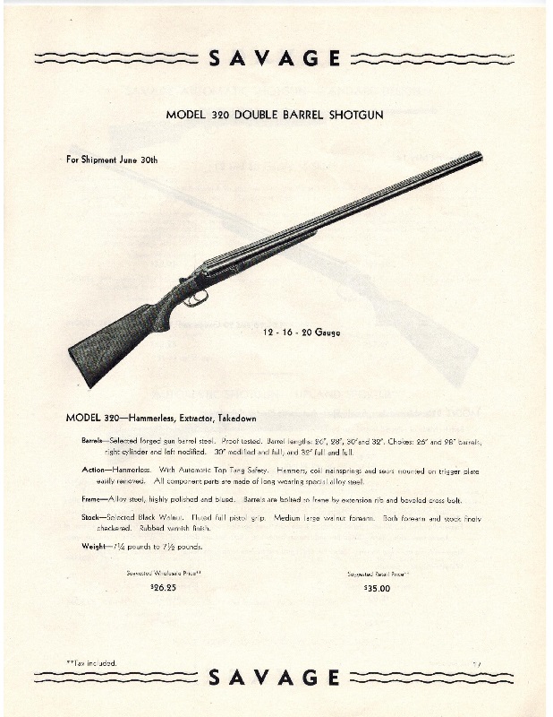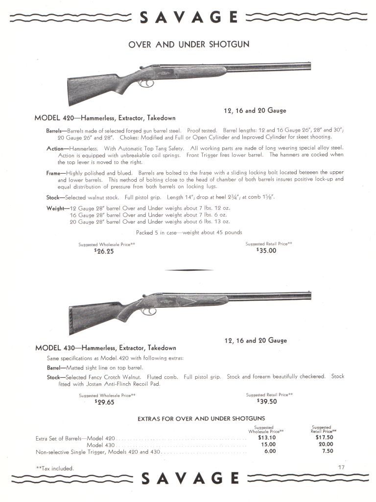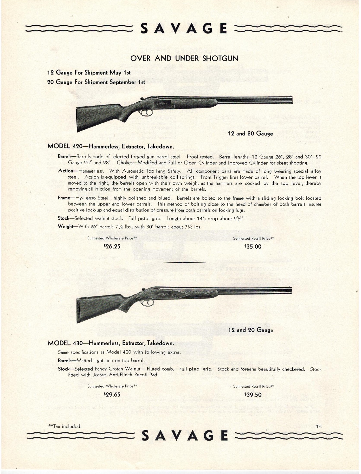 Savage introduced the Model 420 & 430 12- & 20-gauge in their 1937 retail catalog --