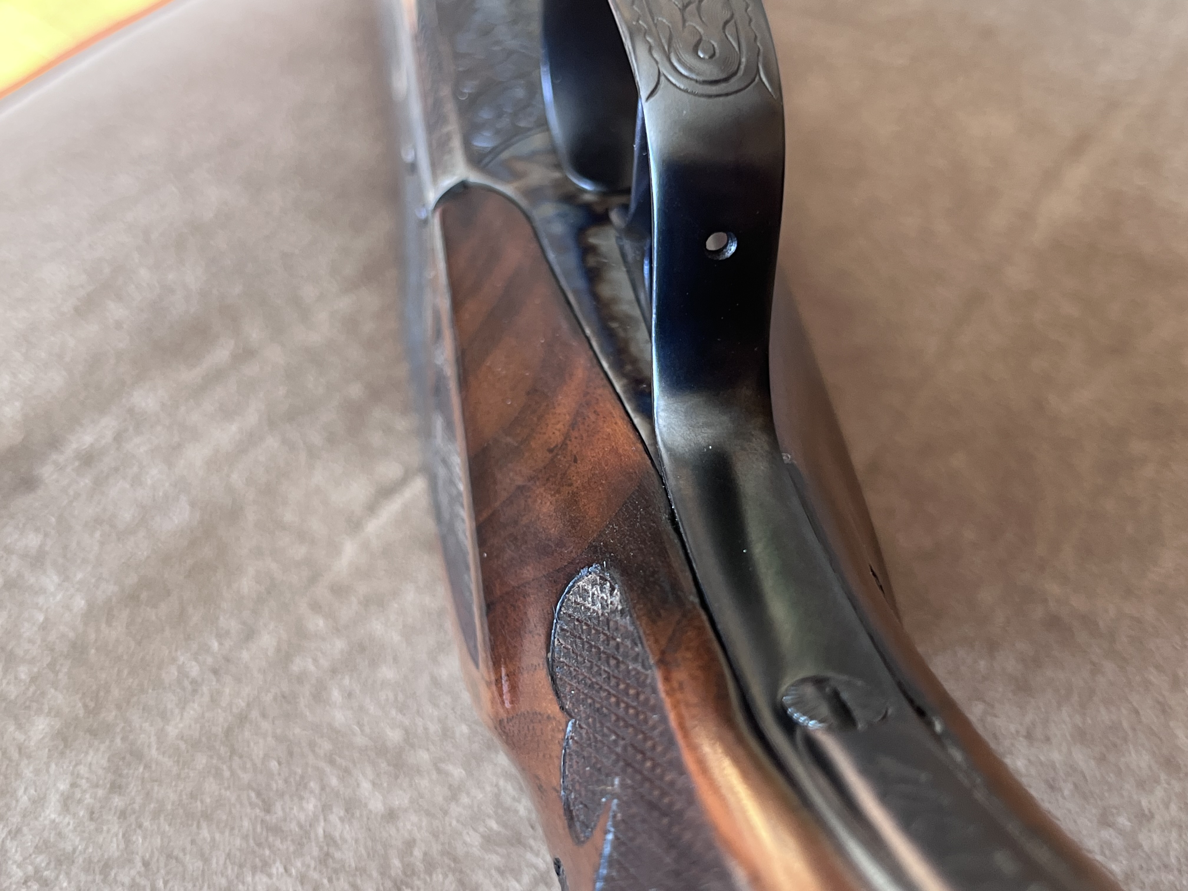 I wondered about that myself? I was not aware they made such a device. I would bet that was what it was for. Thank you!Sporrns wrote: ↑Sat Apr 18, 2026 7:38 pm The hole in the rear of the TG may have been to anchor a rubber finger protector such as sometimes seen on double trigger guns to prevent the trigger "biting" the second finger to the trigger finger in recoil. (Usually a result of not gripping the gun firmly enough). Kevin