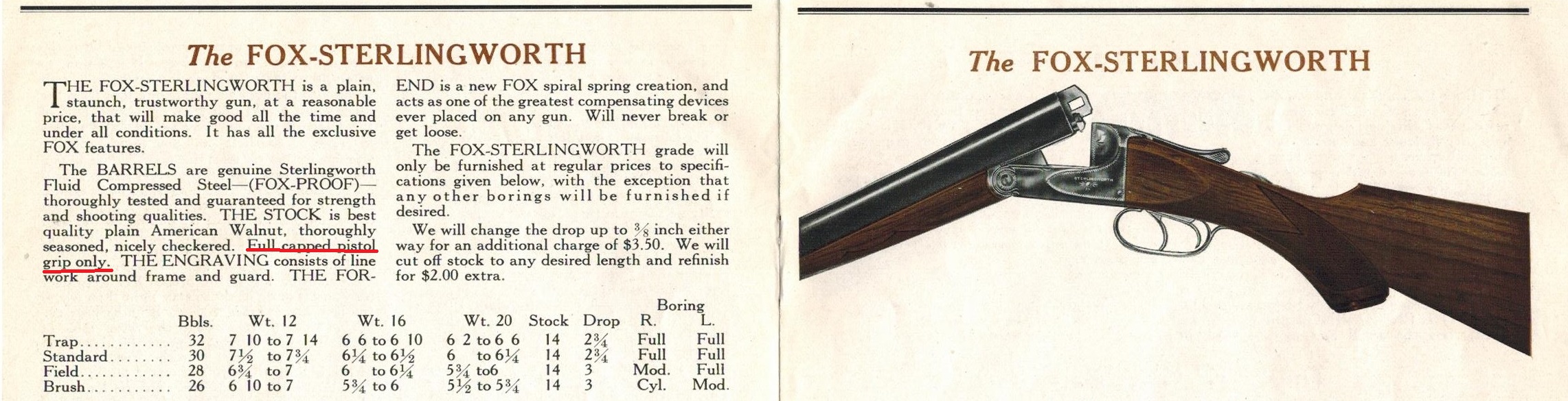 Interested to know the range in the total weight of a Fox Sterlingworth 12 gauge with 28" or 30" barrels. Understand the graded guns range in weight of the total assembled shotgun given the individual barrel weight, length of barrel and stock. Curious to know the weight you measured for a Fox Sterlingworth 12 gauge and wondering if the Savage Sterlingworth 12 gauge guns in the barrel lengths noted differed by much.