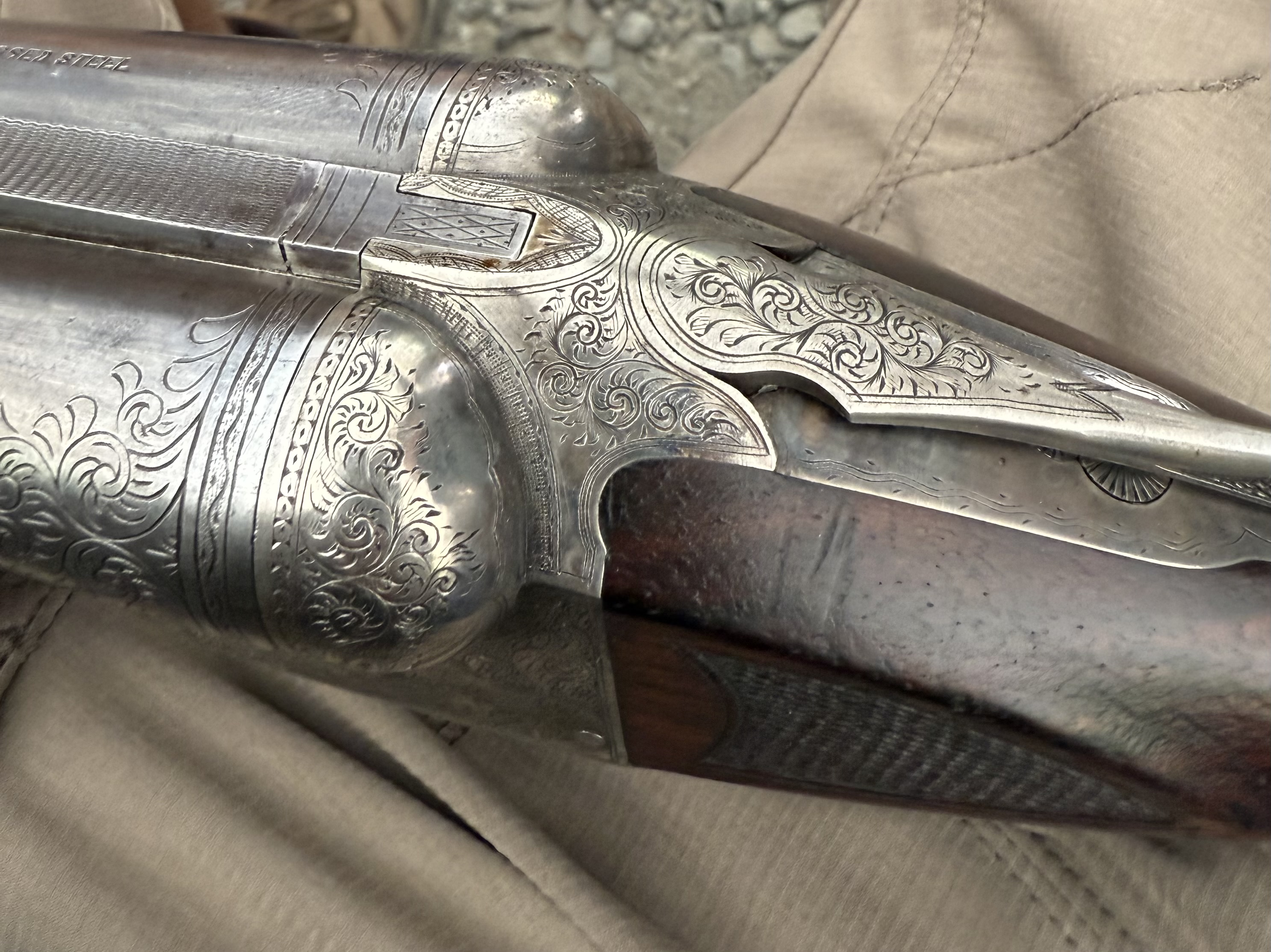 It’s always fun to sit in the Fox Booth and see what walks in. Quite often there’ll be a little something that I’ve never seen before. For instance: today a gentleman showed me his beautiful 20 ga. BE with factory swivels.